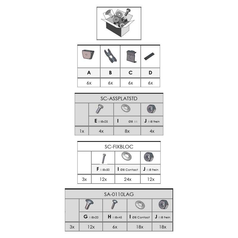 Kit de fixation (pattes + visseries) pour galeries aluminium MTS