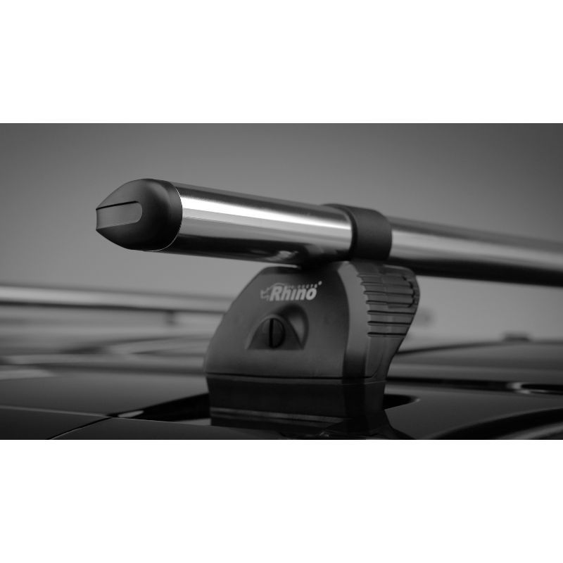 Deux barres de toit en acier inoxydable avec butées de charge.