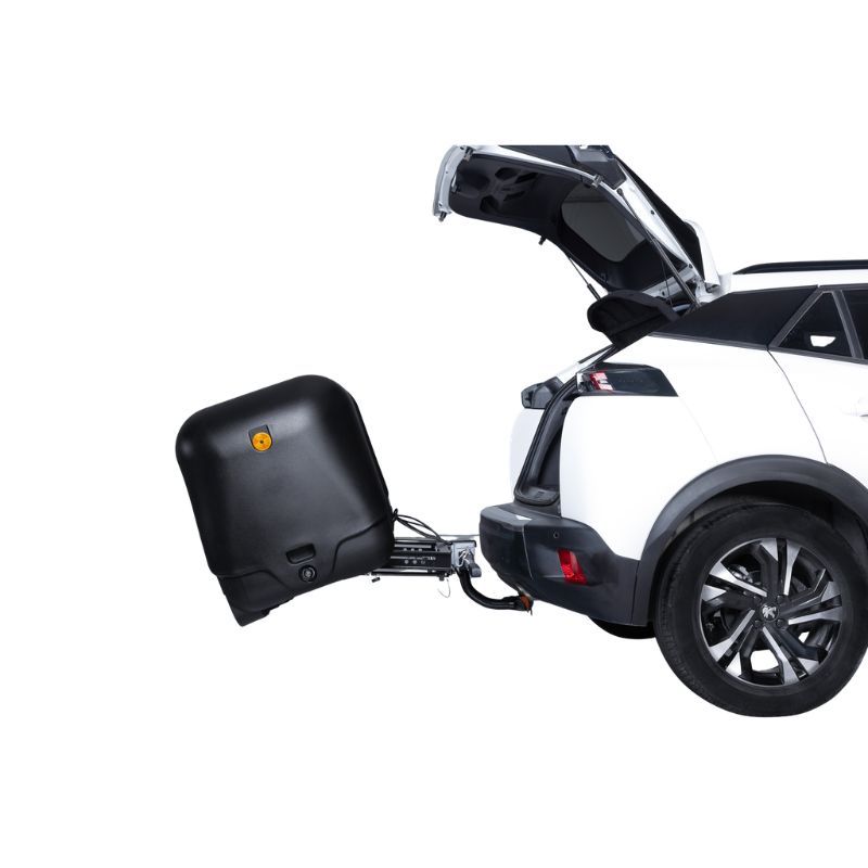 Coffre supplémentaire de couleur noir à installer sur un attelage.