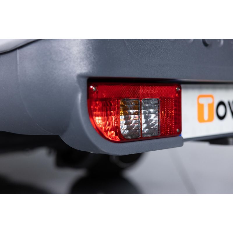 Pour la sécurité, l’ensemble est équipé de deux serrures à clé et d’une serrure antivol intégrée. Côté électrique, il dispose d’un faisceau 13 broches avec un adaptateur 13/7 fourni, assurant le bon fonctionnement des feux et des indications, y compris marche arrière et antibrouillard. Livré en un seul colis, prêt à l’emploi et compatible avec la plupart des hayons et véhicules équipés d’attelage.